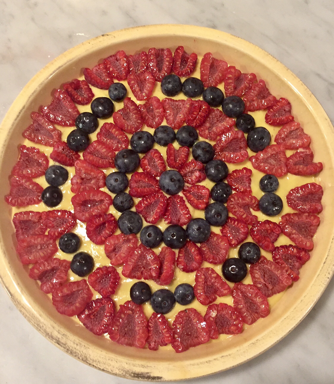 – Dessert, a frozen mango custard with raspberries and blueberries