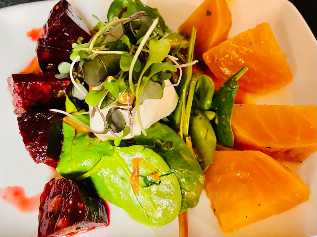 – Heirloom tomato peaches, Burrata cheese and tomato salad with finished with chiffon basil