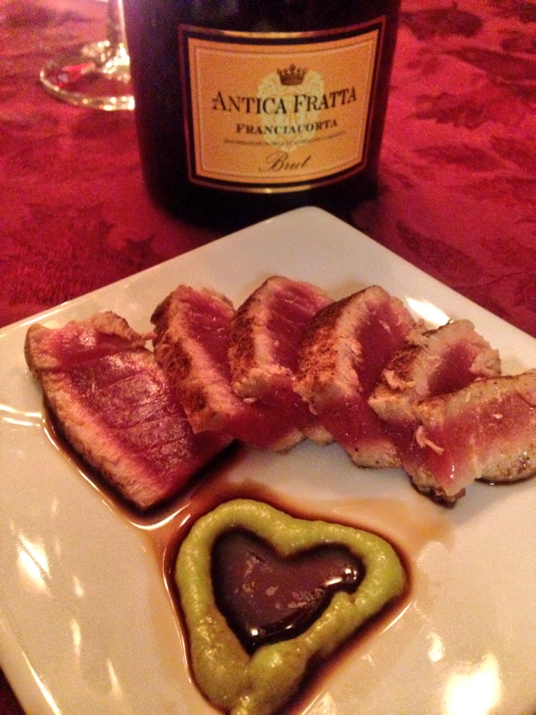 Recently, we had an opportunity to spend kid free time at home, where Kevin always cooks up amazing dishes. Kevin made sure it was a special table for two in our own living room by the window, nice touch!