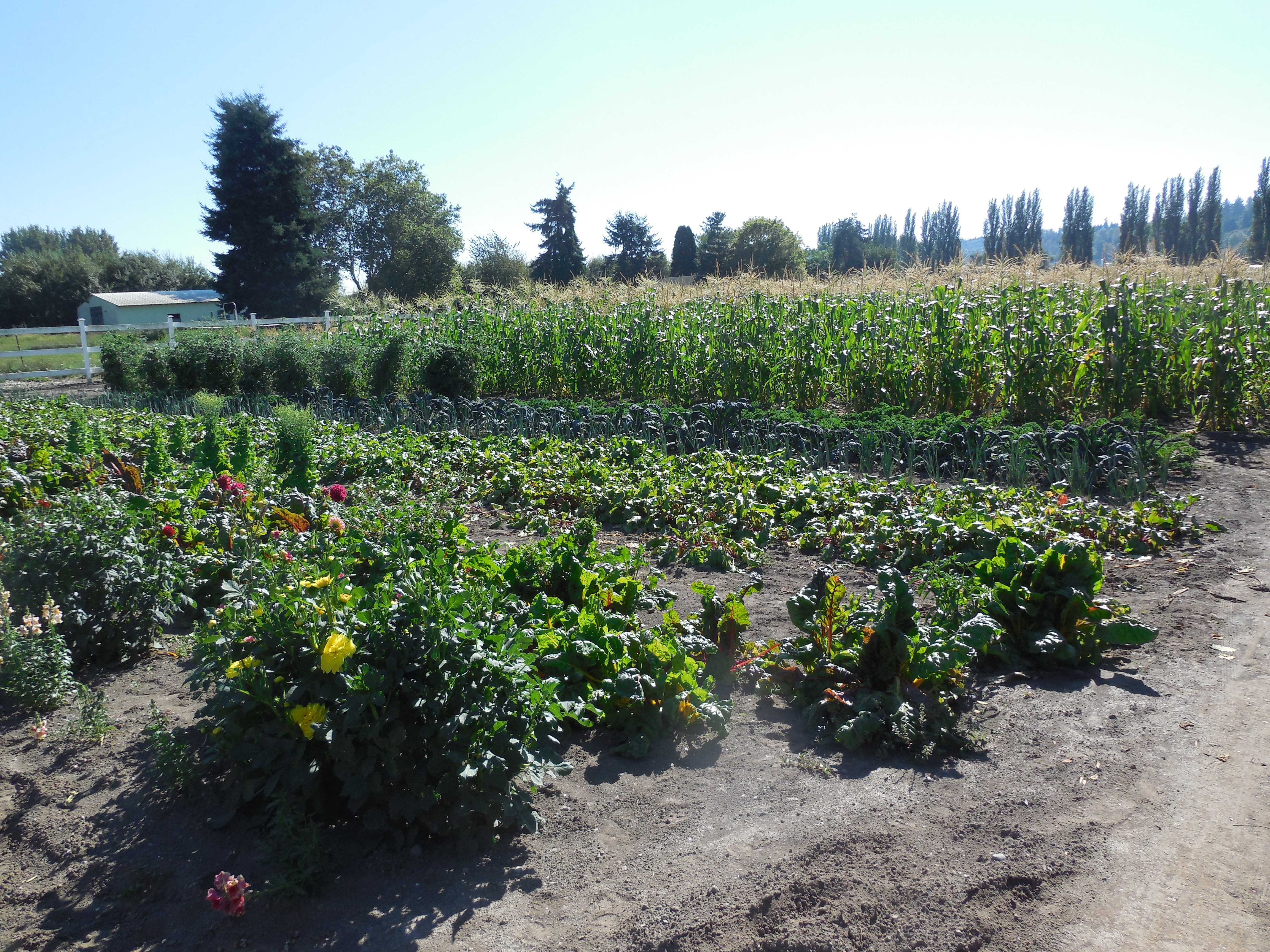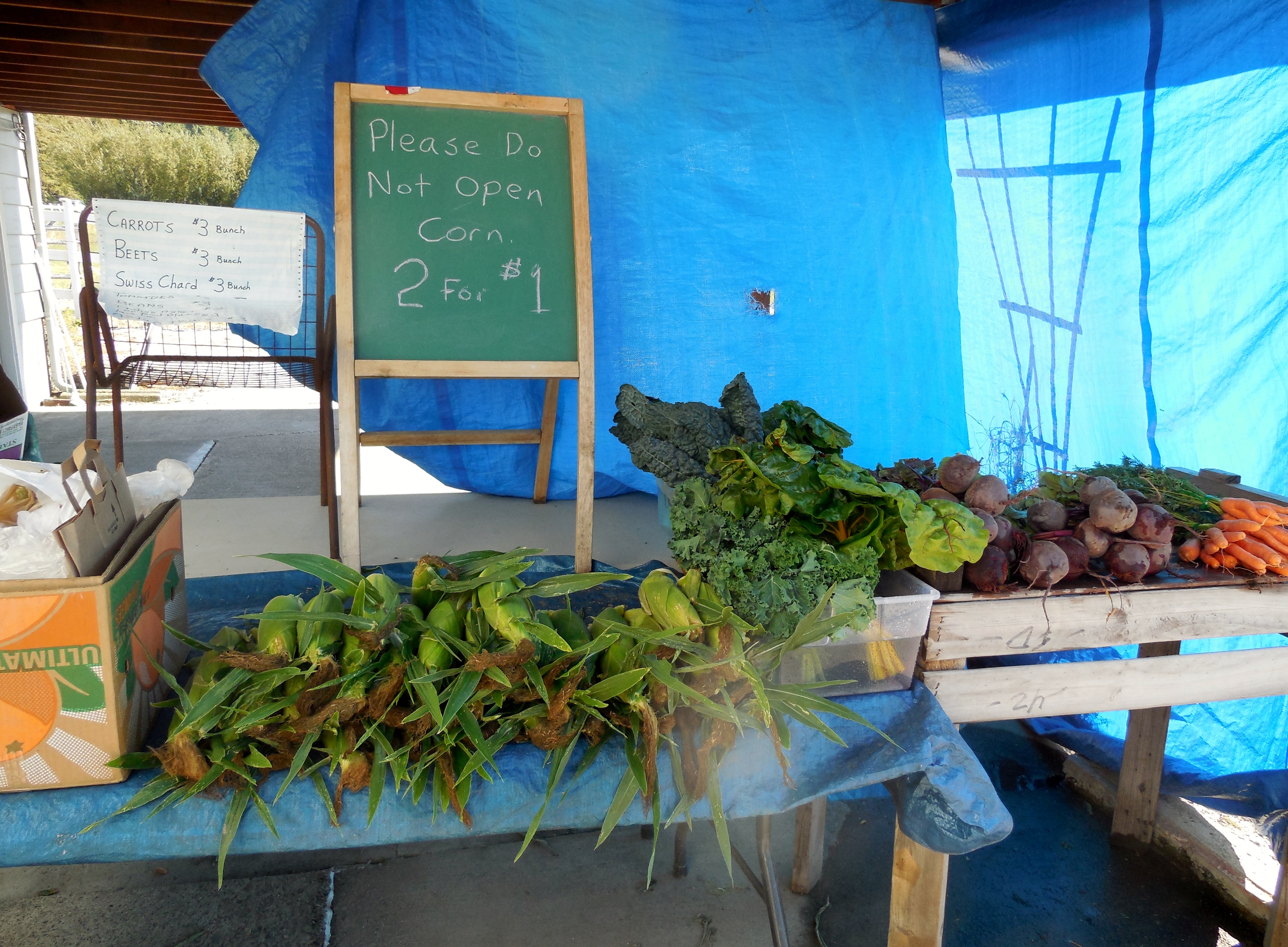 As we headed out to Redmond to pick up some fresh caught Salmon at a friend’s home, we had to land a quick stop at the Funai Farm, which has been serving the valley since the 1930’s. We picked up vegetables for dinner; kale, chard, carrots, beets and plums. Harvey took us down to the field and pulled a couple of ears of corn that we chomped right into, they were so sweet, like fruit.