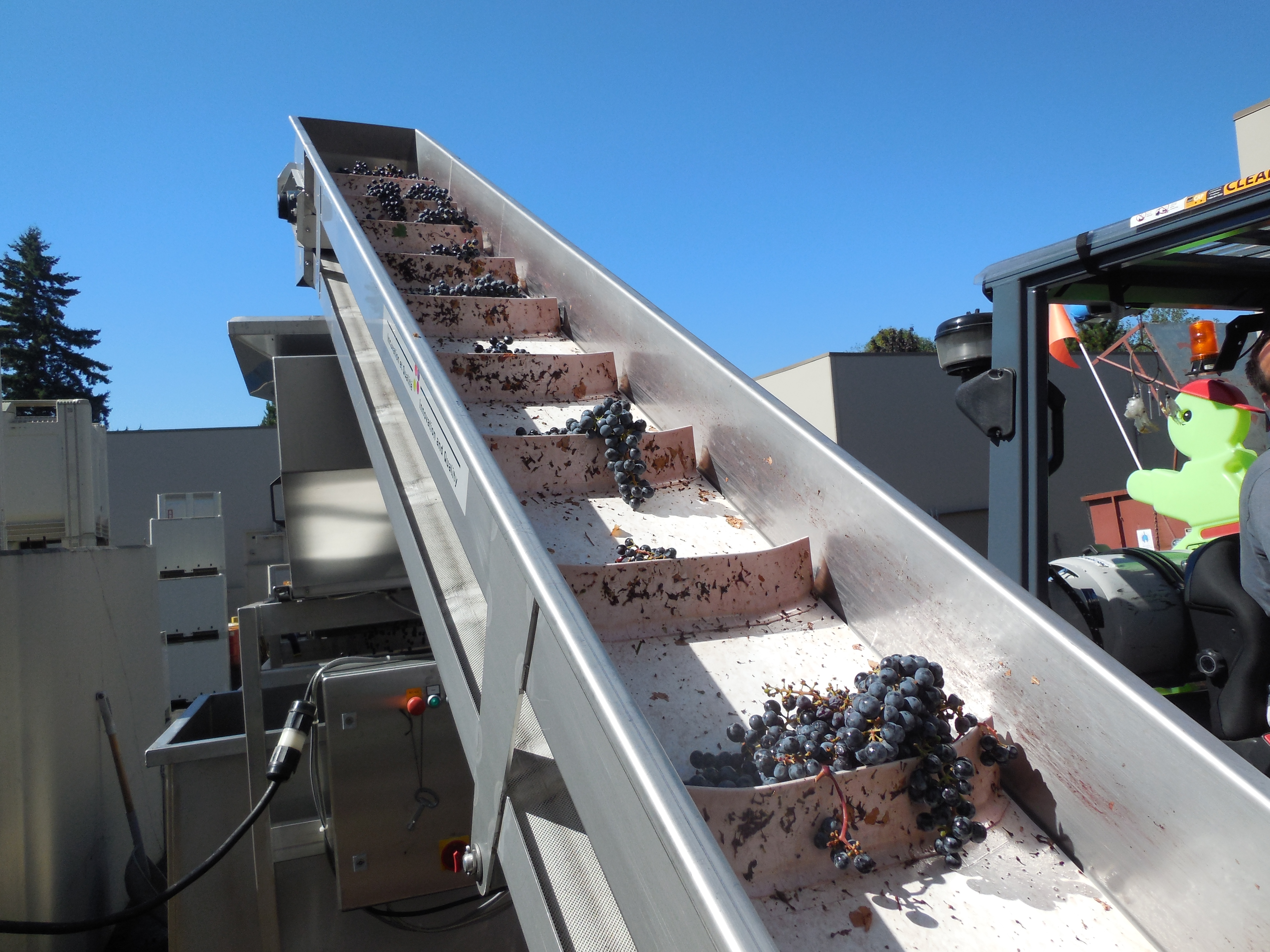 (This process takes a human touch) (up they go to get destemmed)