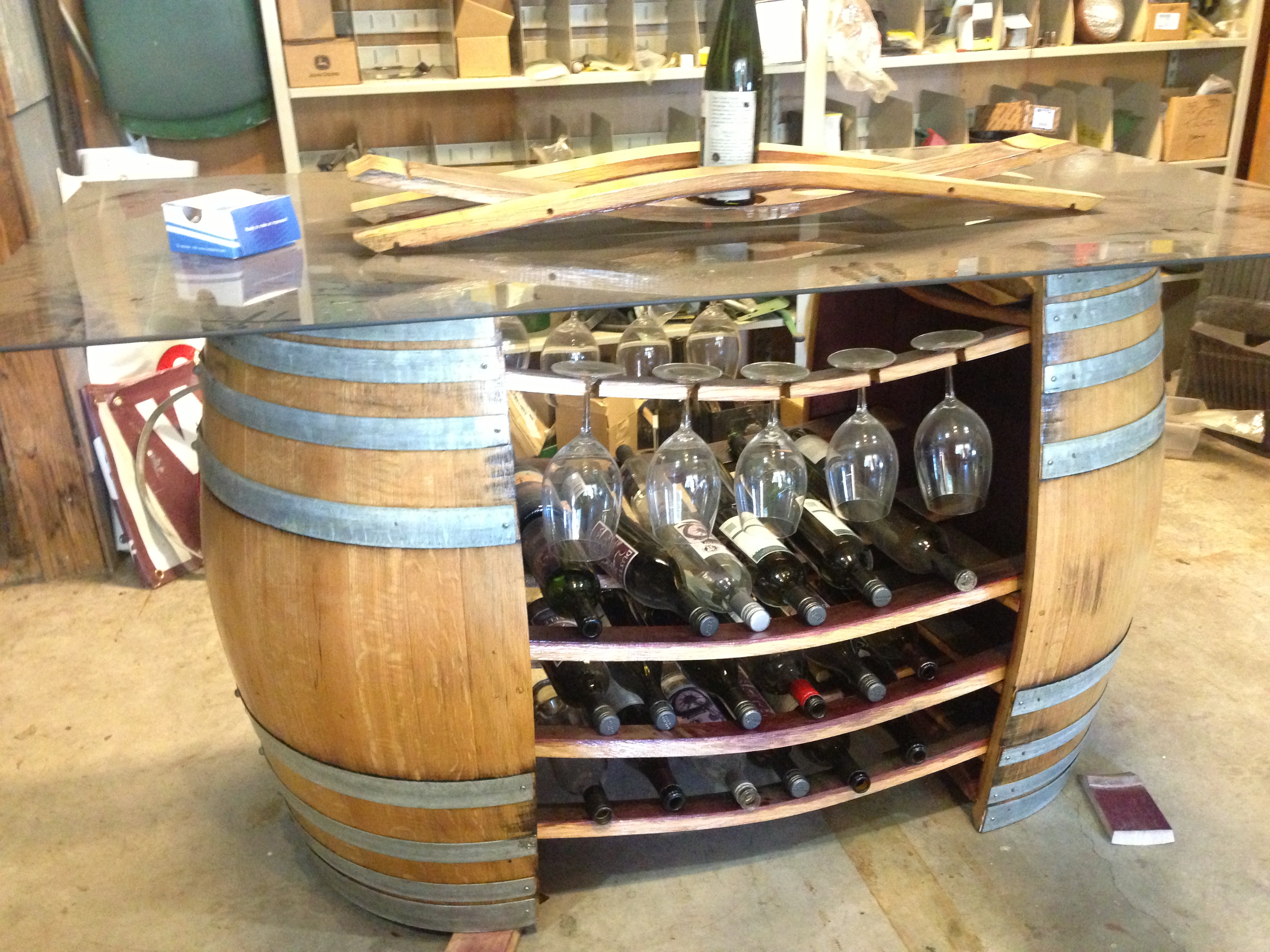 Next stop, Tourist District/Hollywood Schoolhouse area, tasting at Lauren Ashton, where Kit makes some fantastic Reds and his Roussanne is one of my favorites. Next door, Bottom of the Barrel (at the pink tractor); Jack and his son make furniture out of wine barrels. His workshop is open to peruse and we admire the wine bar he created out of two wine barrels.